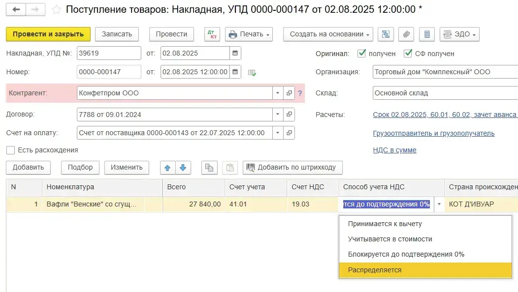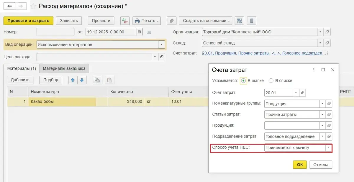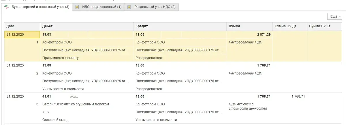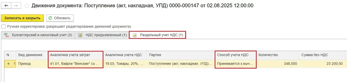 Раздельный учет НДС в программе 1С