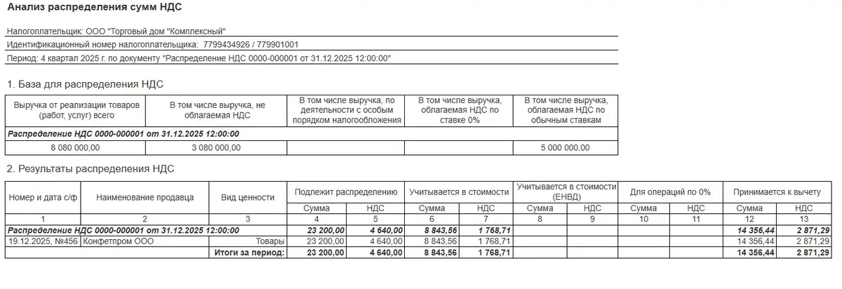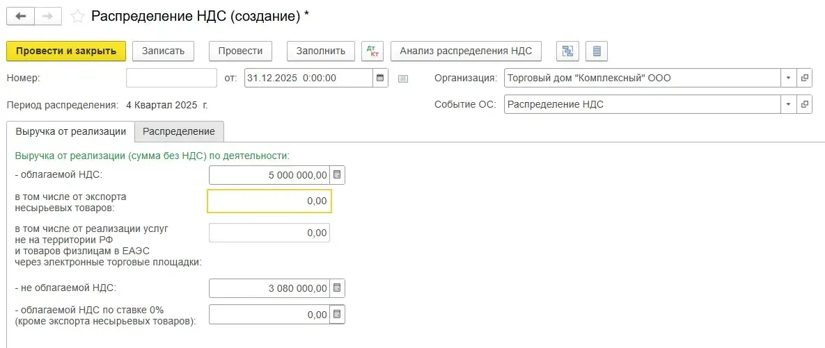 Раздельный учет НДС в 1С